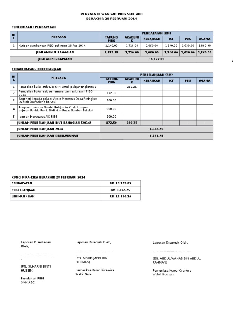 CONTOH PENYATA KEWANGAN from imgv2-1-f.scribdassets.com Berikut di bawah ini adalah contoh format dari laporan magang Laporan tahunan ialah laporan komprehensif mengenai aktiviti syarikat sepanjang tahun sebelumnya. Contoh laporan pkl banyak dicari siswa maupun mahasiswa. Magang merupakan salah satu syarat untuk mengerjakan skripsi, jadi biasanya antara semester 5 sampai semester 7. Semua syarikat berdaftar di malaysia diperlukan untuk memaklumkan kandungan laporan tahunan mereka kepada umum bermula pada 1 april tahun berikutnya. Dapatkan contoh laporan keuangan lengkap seperti: Pada umumnya memberikan pandangan keseluruhan keadaan kewangan jangka pendek dan panjang bagi butiran di dalam laporan ini akan menyatakan tentang aset, ekuiti dan liabiliti pemilik syarikat dalam sesuatu tempoh. Sedang mencari contoh penyata kewangan?